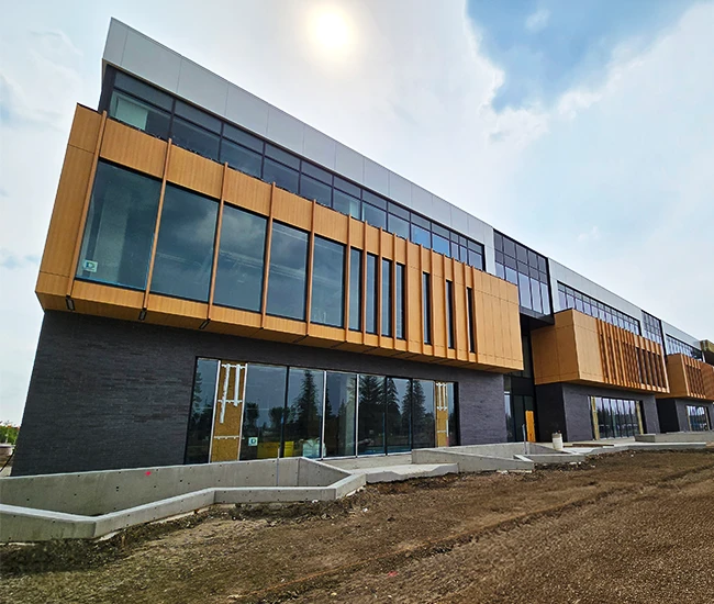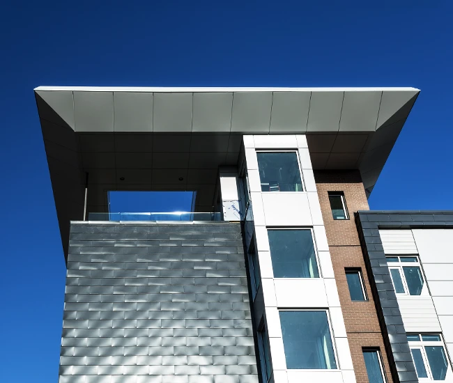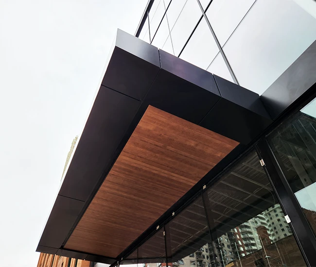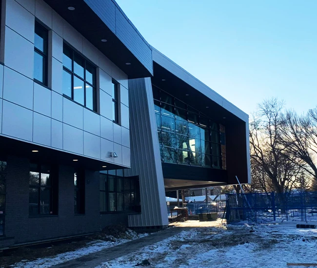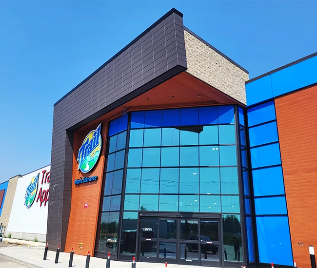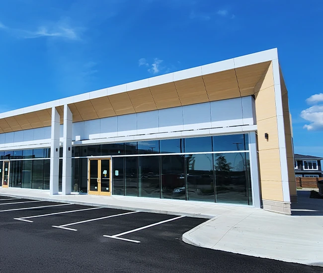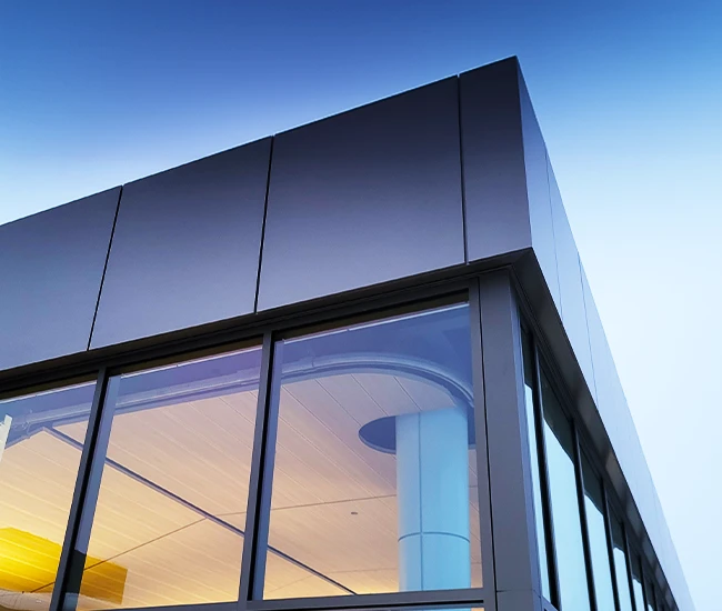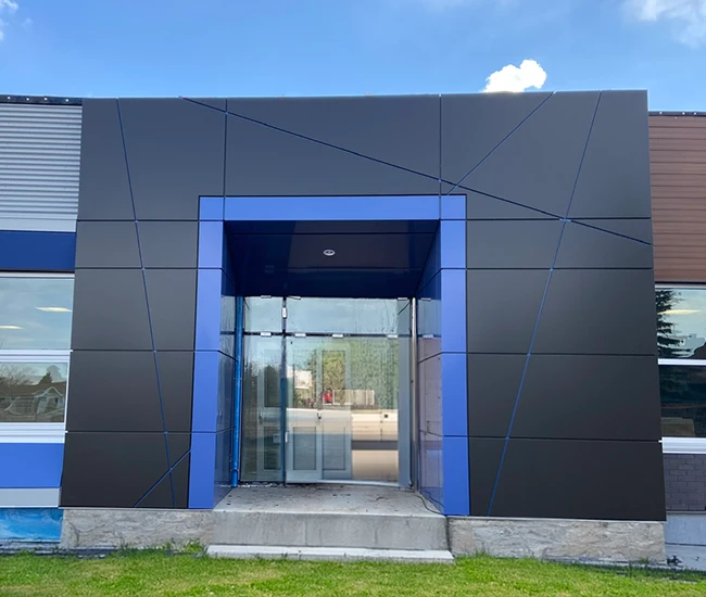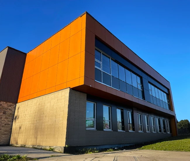 Elevate your building’s exterior with our Aluminum Composite Panel Systems, designed for both beauty and performance. Featuring concealed fasteners and lightweight construction, these panels provide exceptional design flexibility while ensuring quality and durability. Choose from an extensive range of colours to create a stunning facade that reflects your brand identity.