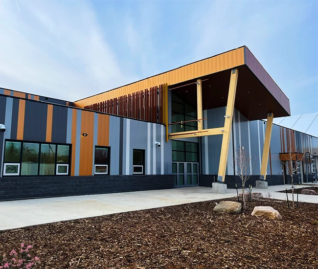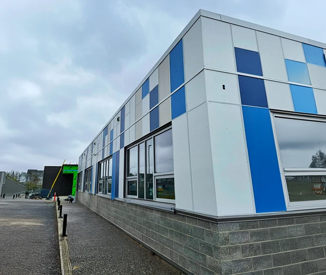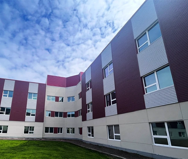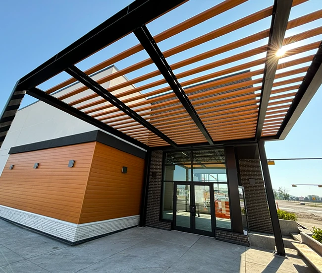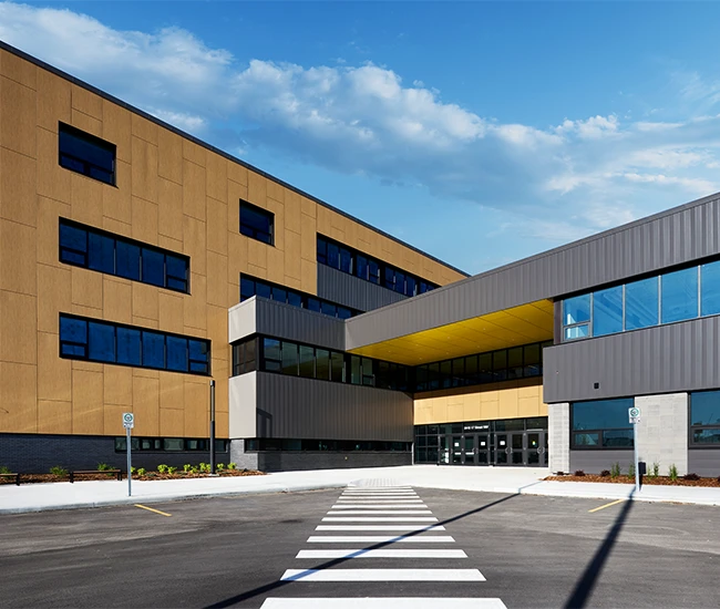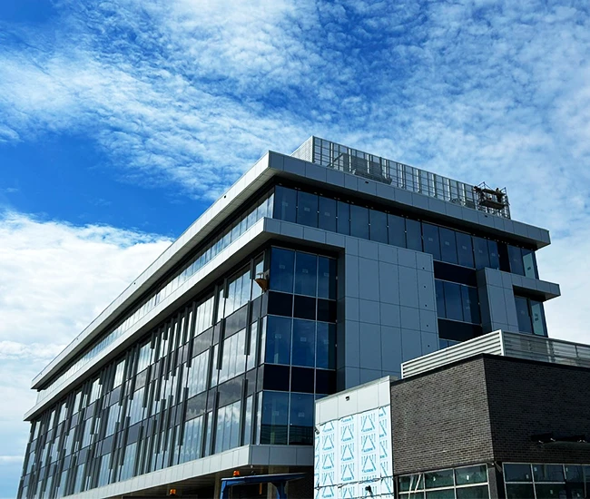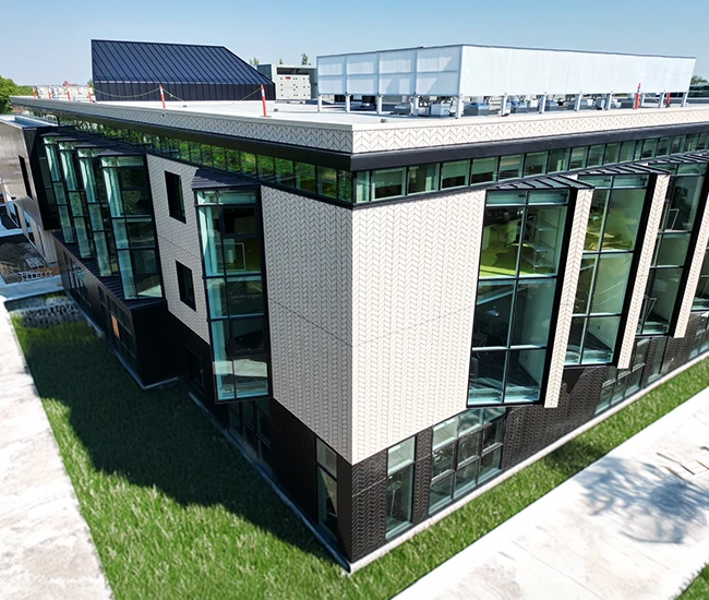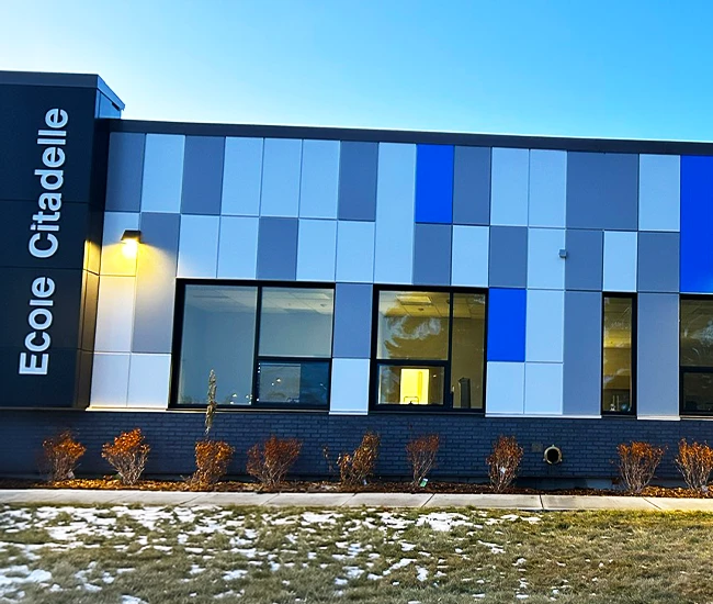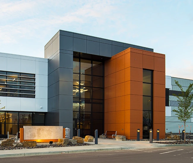 Elevate your building’s exterior with our Aluminum Composite Panel Systems, designed for both beauty and performance. Featuring concealed fasteners and lightweight construction, these panels provide exceptional design flexibility while ensuring quality and durability. Choose from an extensive range of colours to create a stunning facade that reflects your brand identity.